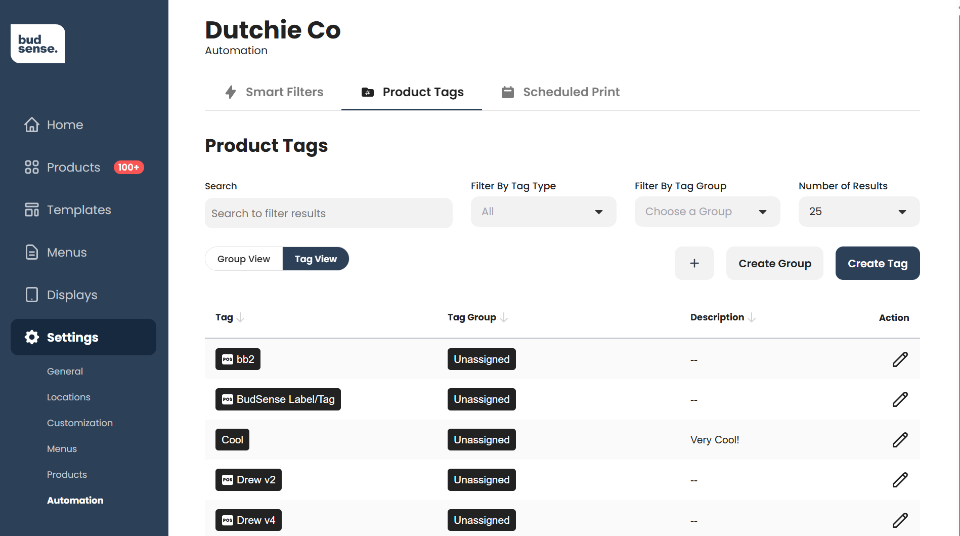 Introduced with BudSense's 2.6 update, Tags are a new advanced product information field that provide users with the ultimate flexibility in deciding how products are grouped and categorized. Once created, Tags can be added to products and used to build Smart Filters, or synced directly from your Point of Sale.